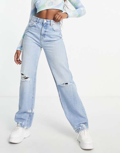 Pull Bear straight leg frayed hem jeans with rips in blue ASOS Very well made.