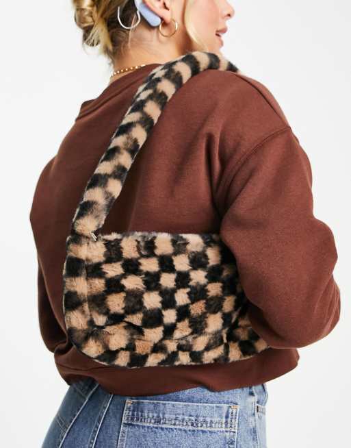 ASOS DESIGN 90s shoulder bag with checkerboard faux fur in brown Very well made.