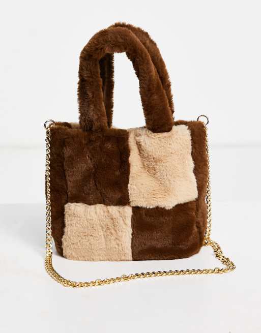 ASOS DESIGN faux fur tote bag with chain in brown and beige Very well made.