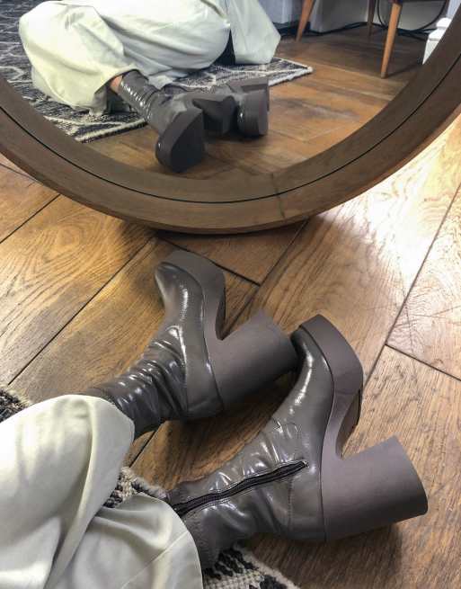 ASOS DESIGN Elsie high heeled sock boots in grey patent ASOS Very well made.