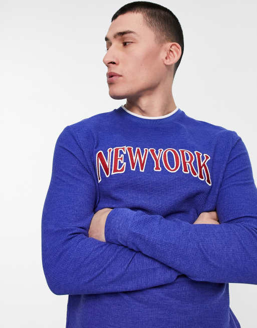 ASOS DESIGN long sleeve t shirt in blue waffle with New York city Very well made.