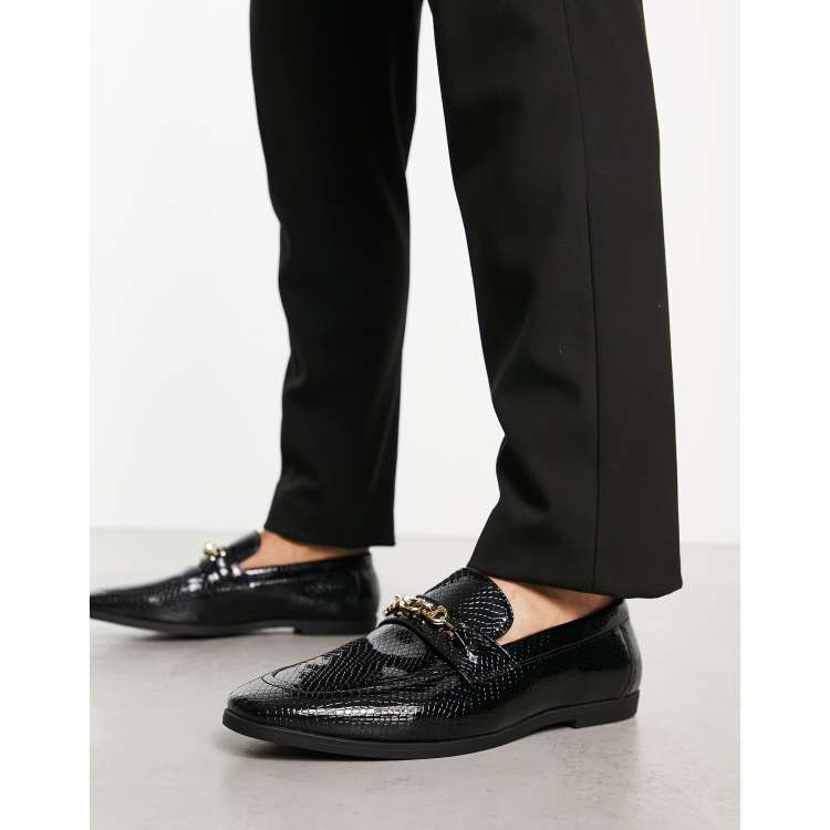 ASOS DESIGN loafers in black faux croc with gold snaffle ASOS Very well made.
