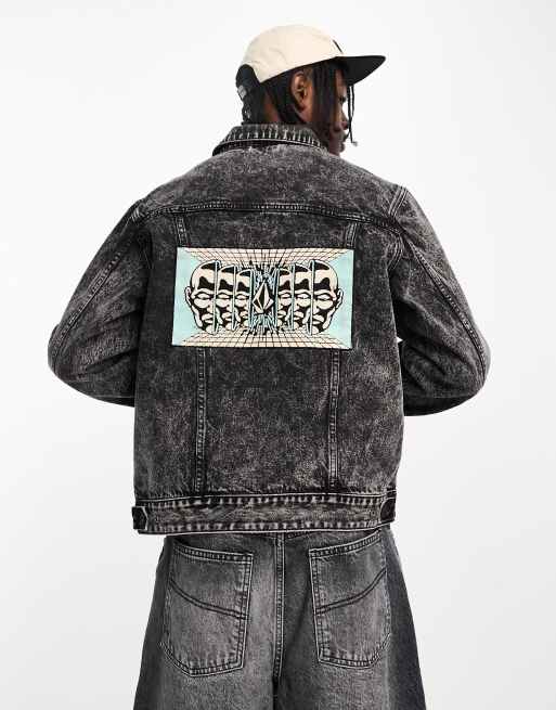 Volcom Mind Invasion denim jacket with back print in washed black Very well made.