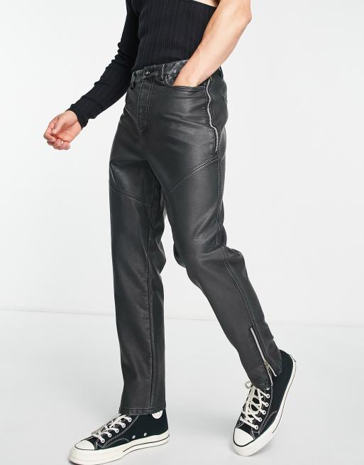 ASOS DESIGN tapered leather look pants with zip detailing in Very well made.