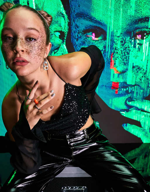 ASOS DESIGN satin twill cowl neck top with scarf in black ASOS Very well made.
