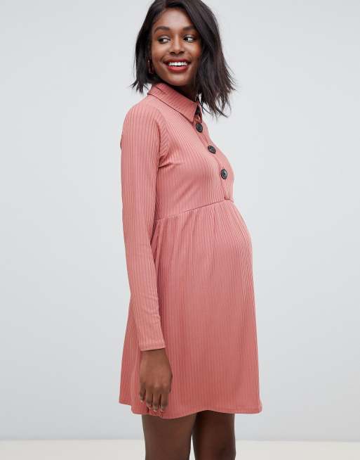 ASOS DESIGN Maternity nursing mini smock dress in rib with faux Very well made.