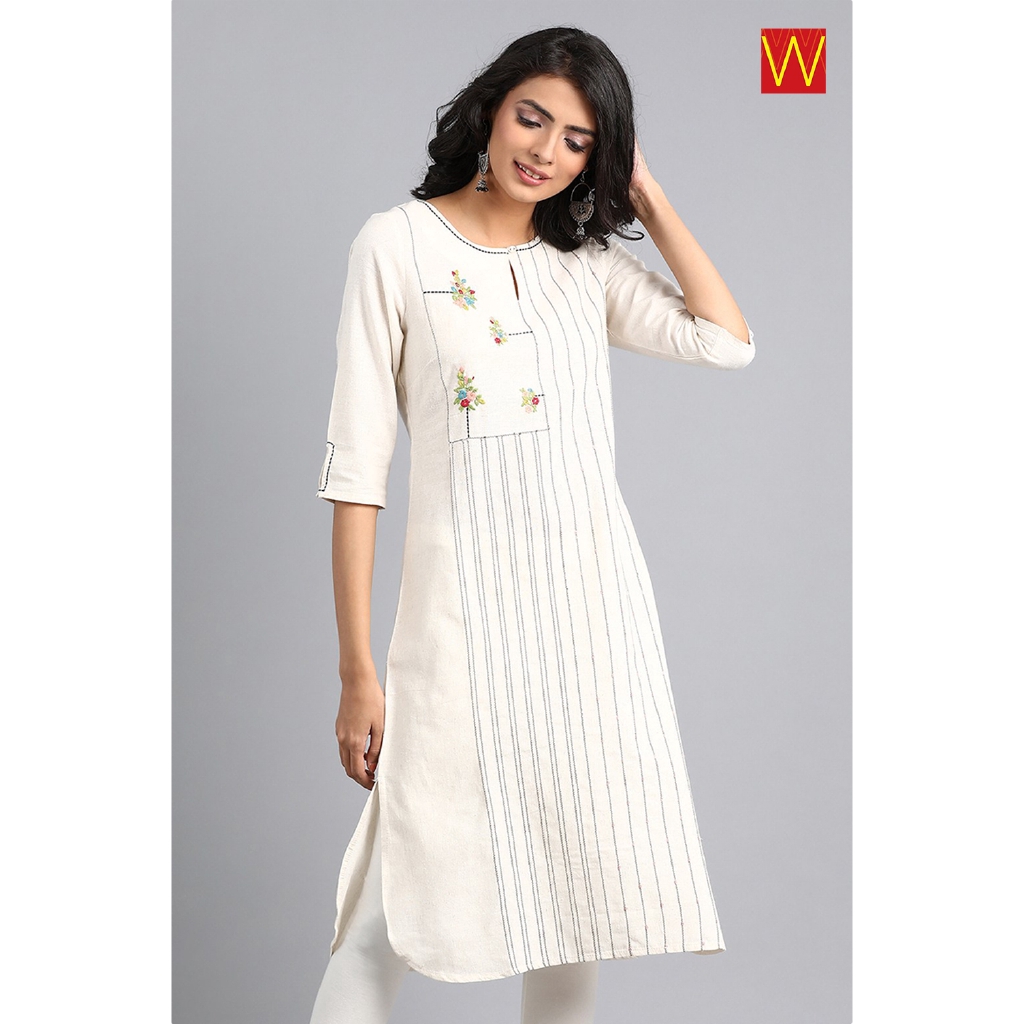 W For Woman White Women Mandarin Neck Printed 3 4 Sleeve Indian Very well made.