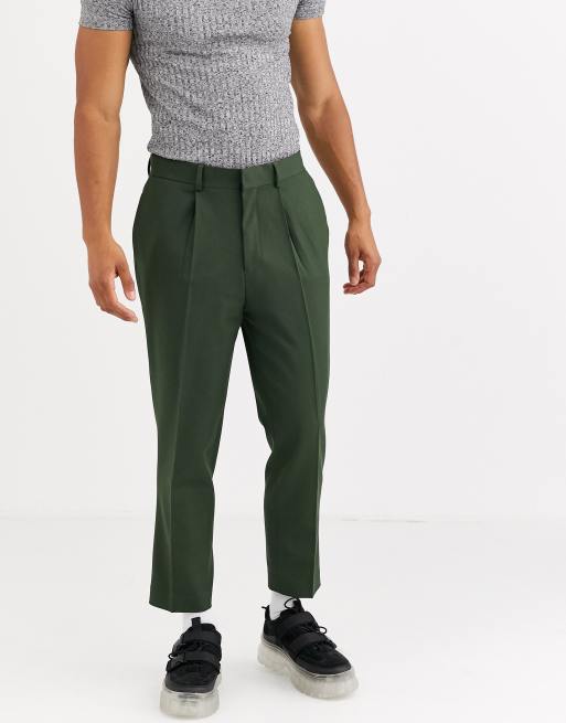 ASOS DESIGN tapered crop smart trousers with pleats in ivy green Very well made.