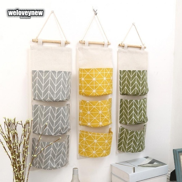 Wall Hanging Storage Bags 3 Pockets Cotton Linen Door Organizer Pouch Office Home Bedroom Decoration Very well made.