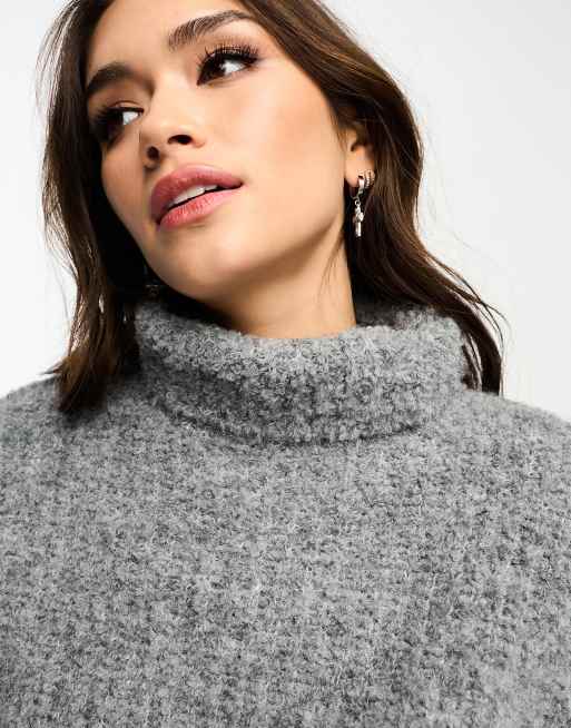 ASOS DESIGN oversized roll neck jumper in boucle yarn in charcoal Very well made.
