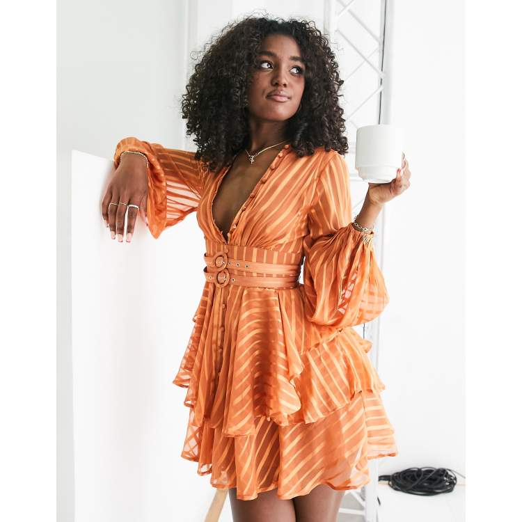 ASOS EDITION cut out ring detail volume shoulder mini dress in Very well made.