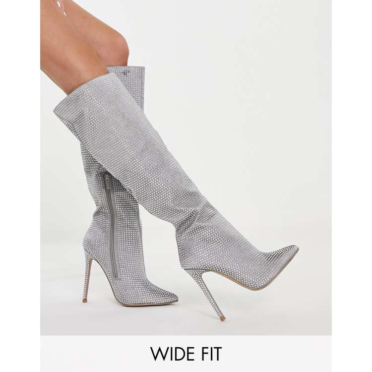 ASOS DESIGN Wide Fit Carly high heeled embellished pull on knee Very well made.