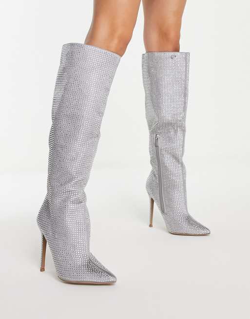 ASOS DESIGN Cannes heeled hardware knee boots in silver ASOS Very well made.