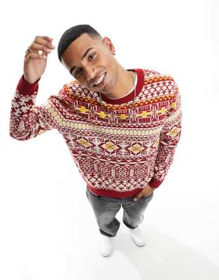 ASOS DESIGN knitted Christmas jumper in red fairisle pattern ASOS Very well made.