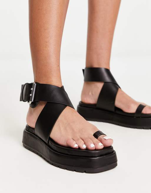 ASOS DESIGN Falcon toe loop flat sandals in black BLACK ASOS Very well made.