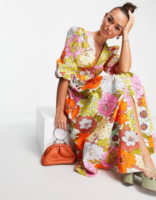 ASOS EDITION Vestito midi a maniche lunghe blu con stampa a Very well made.