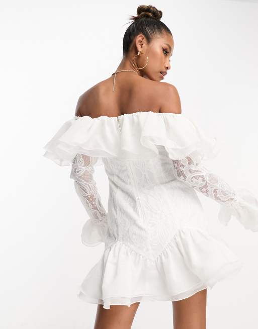 ASOS LUXE off shoulder ruffle embroidered mini dress in white ASOS Very well made.