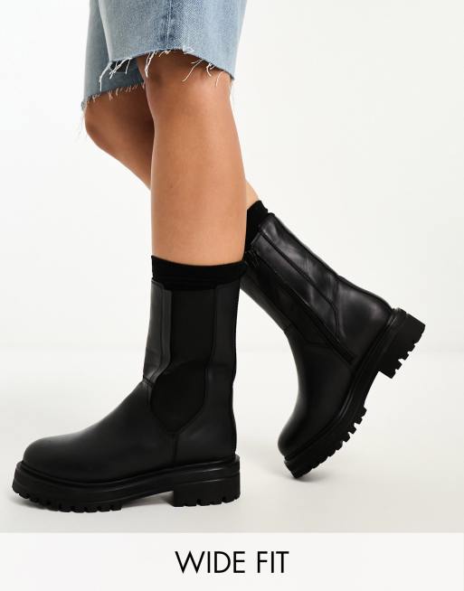 London Rebel Leather Wide Fit chunky chelsea boots in black ASOS Very well made.