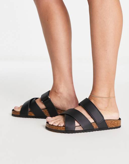 ASOS DESIGN Wide Fit Fiery double cross strap flat sandals in Very well made.