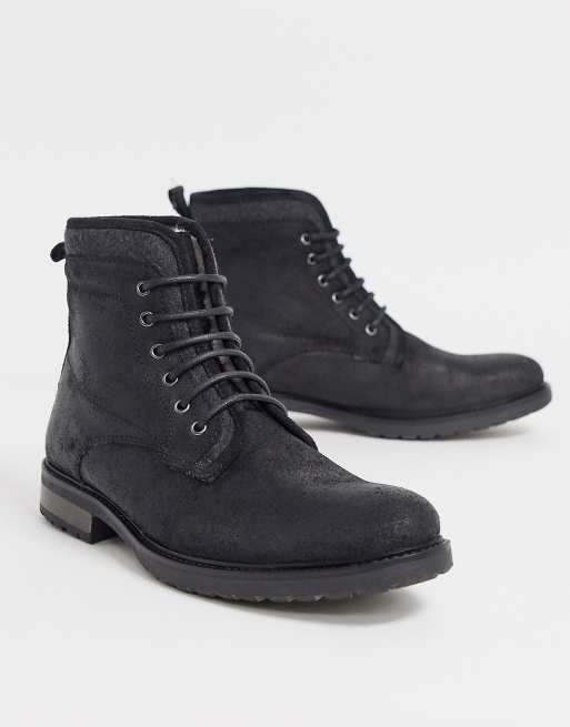 ASOS DESIGN lace up work boots in black leather with faux Very well made.