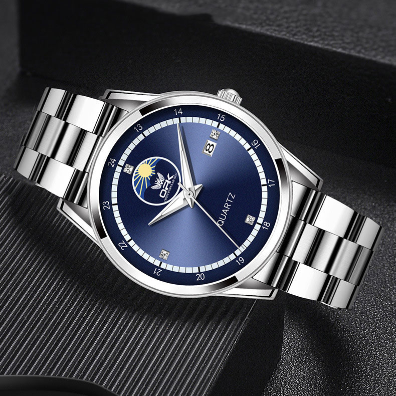 Moon Phase Decoration Dial Fashion Men s Watch Metal Strap Very well made.