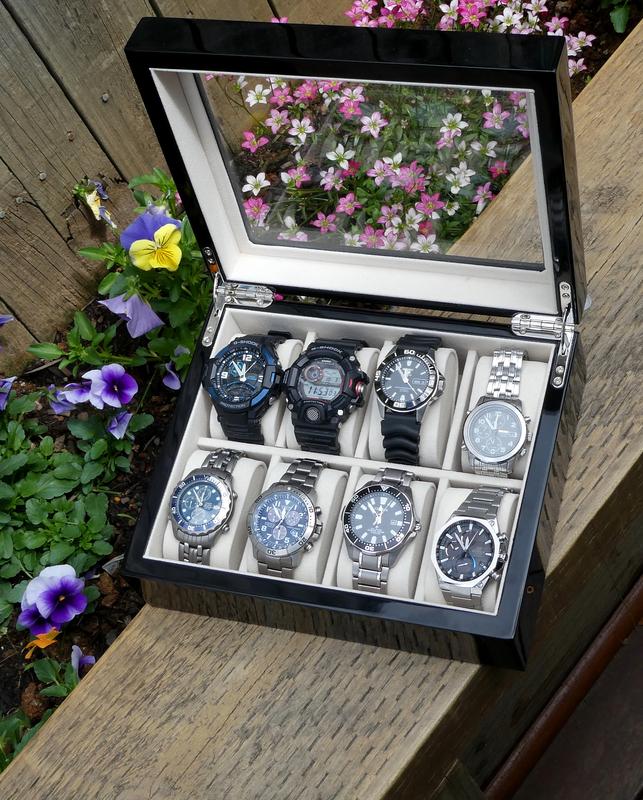 Ogrmar 12 Slot PU Leather Lockable Watch Storage Boxes Men Women Jewelry Display Drawer Case 2 tier Organizer Watch Showcase with Glass Lid Very well made.