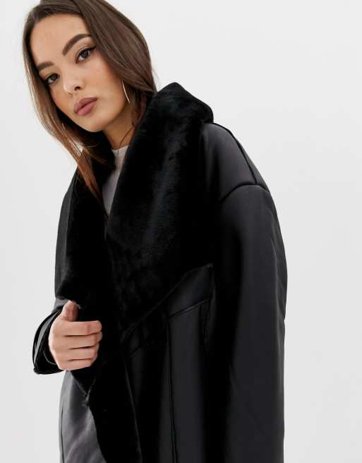 Missguided Faux Shearling Waterfall Jacket Black 63 Missguided Very well made.