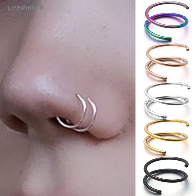 mveomtd Double Nose Hoop Ring For Piercing Nose Hoop Nose Ring Hoop For Women Spiral Nose Hoop For Girls Nostril Piercing Jewelry 6mm Nose Stud Very well made.