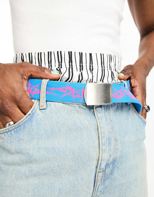 ASOS DESIGN webbing belt with 90s tattoo print in blue ASOS Very well made.