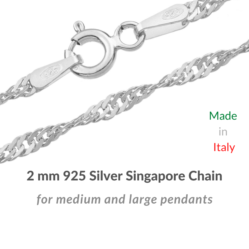 AGALIL Italy 925 Sterling Silver 2mm Singapore Chain with Extender Very well made.