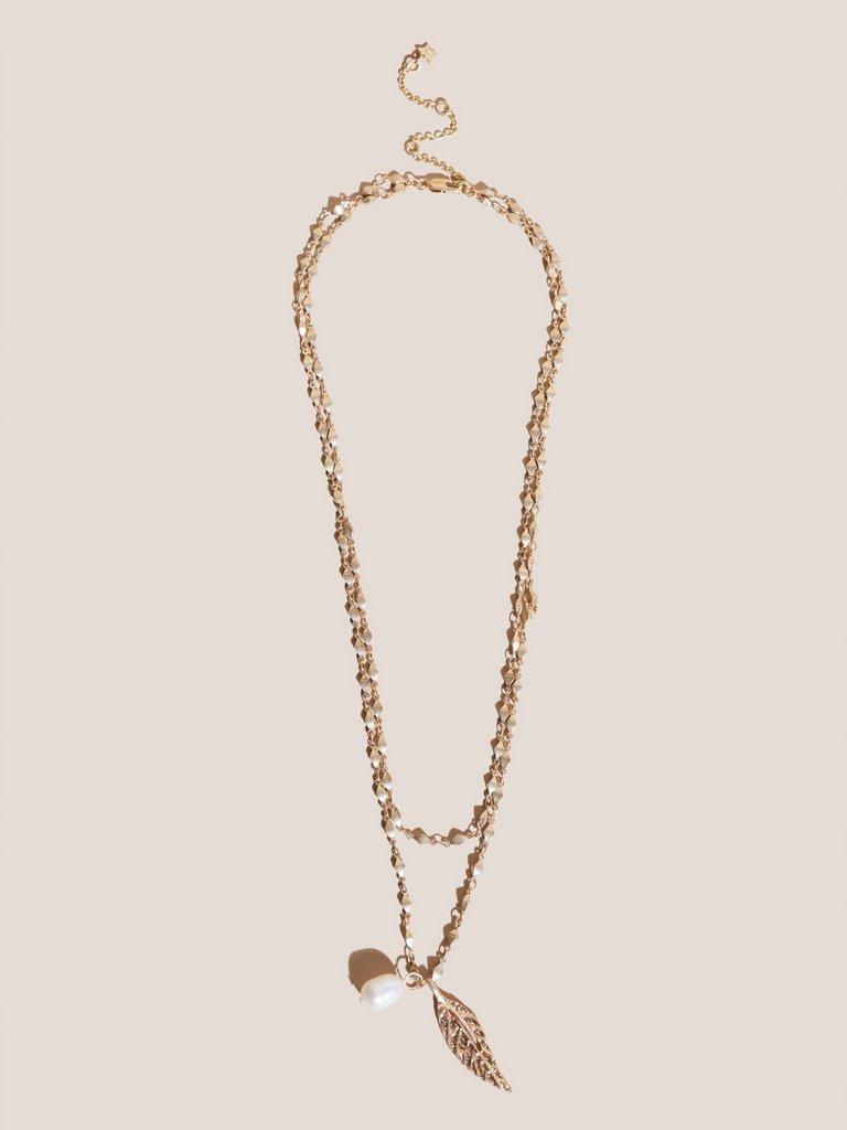 Double Row Pearl Leaf Necklace in GOLD TONE METALLIC White Stuff Very well made.