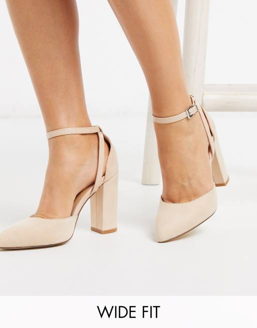 Truffle Collection wide fit pointed block heeled shoes in beige Very well made.