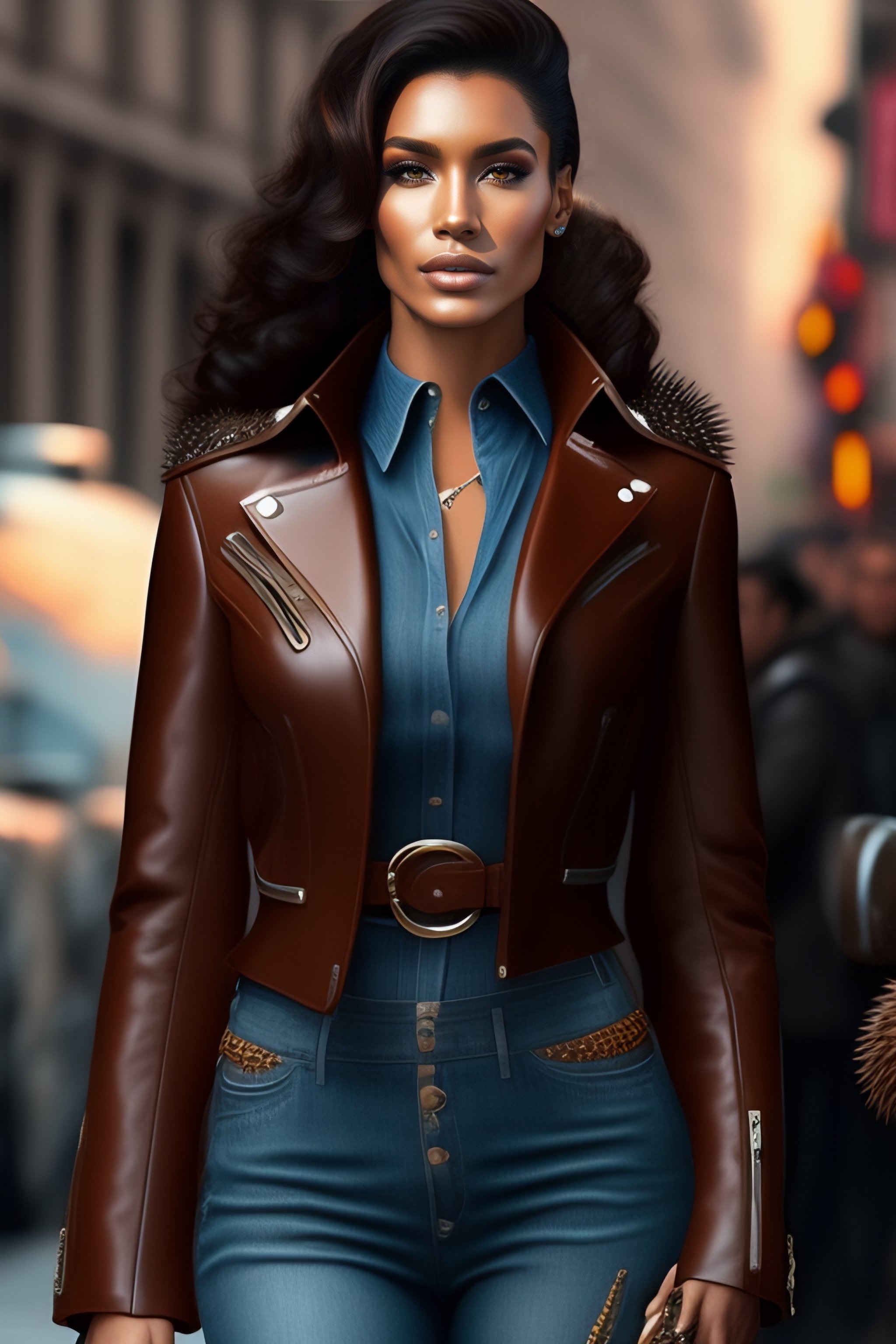 Lexica Beautiful woman in brown leather pilot jacket Walter Very well made.