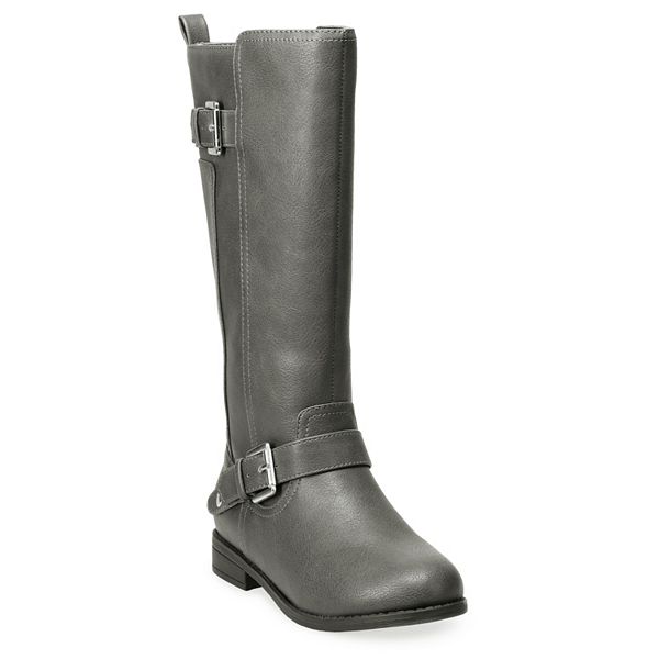 Journee Collection Womens Regular Sized and Wide Calf Ankle Strap Buckle Knee High Riding Boots Grey 7 Wide US Very well made.