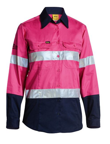 Workwear Bisley Shirt L s Hivis Lightweight Pink navy Amare Safety Very well made.