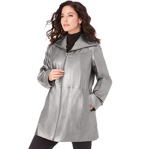 Roaman s Women s Plus Size A line Leather Jacket 44 W Silver Very well made.