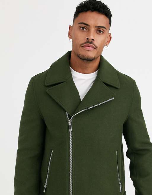 ASOS DESIGN wool mix belted biker jacket in khaki Very well made.