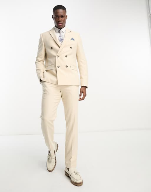 Harry Brown Wedding wool mix slim fit double breasted suit jacket in cream Very well made.