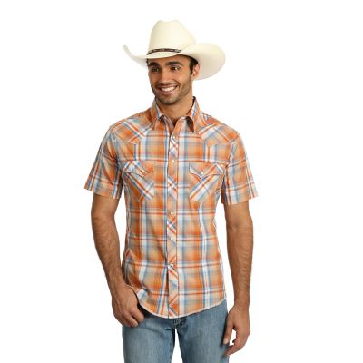 Men s Wrangler Fashion Snap Short Sleeve Western Snap Plaid Shirt Very well made.