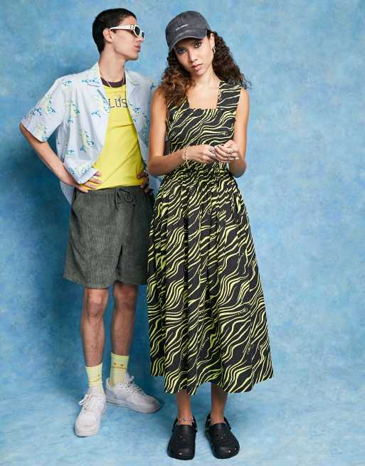 COLLUSION zebra print midi dress in black and yellow Very well made.