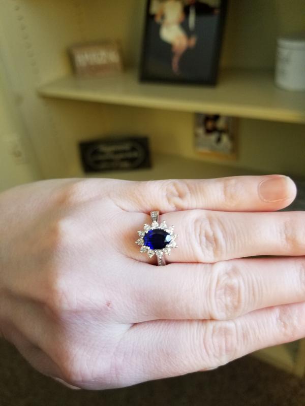 Oval Lab Created Blue and White Sapphire Flower Ring in Sterling Very well made.