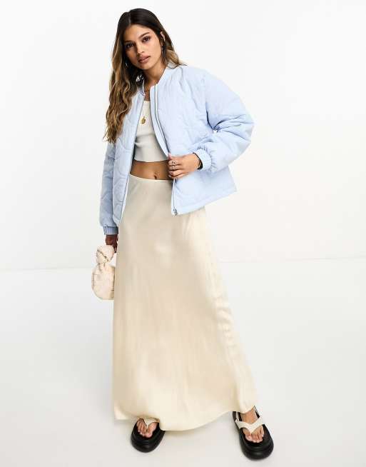 ASOS DESIGN quilted bomber jacket in baby blue Very well made.