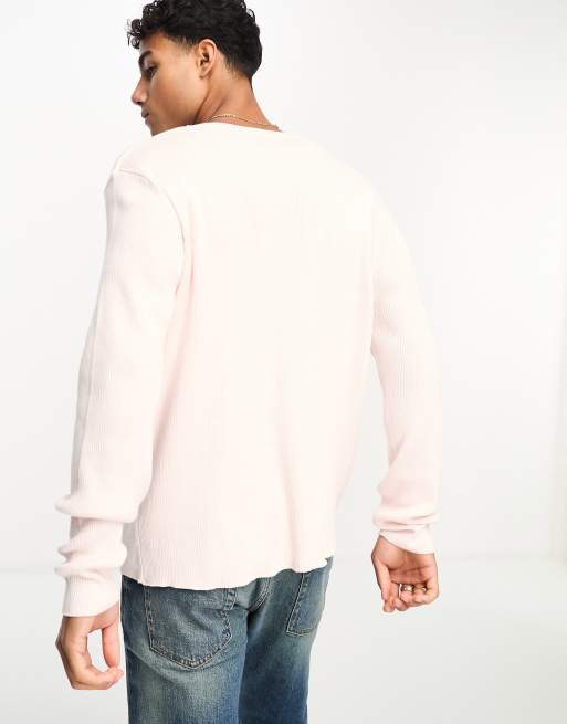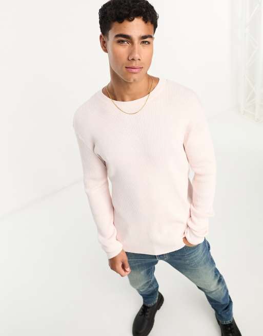 ASOS DESIGN oversized knit essential ribbed sweater in light pink Very well made.
