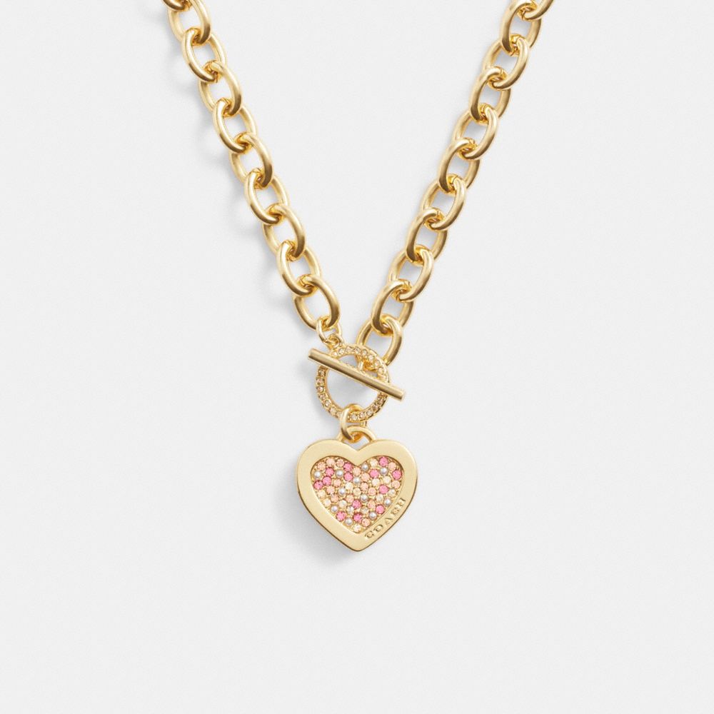 COACH Signature Stone And Heart Chain Necklace Very well made.