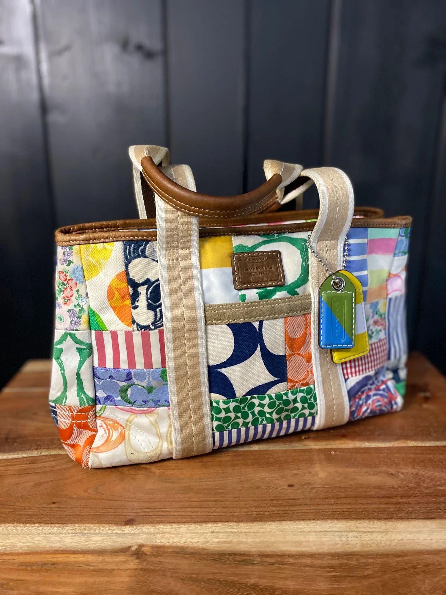 Vintage Coach Multi Color Patchwork Logo Satchel Handbag the Very well made.