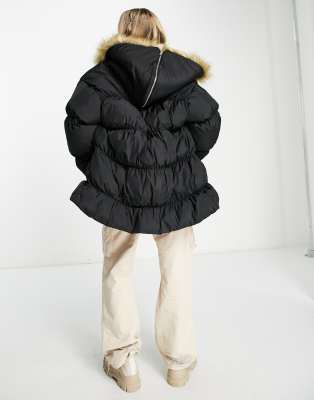 COLLUSION oversized parka jacket with faux fur hood in black Very well made.