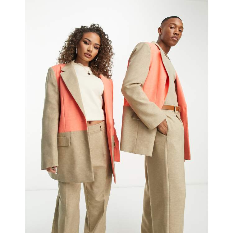 ASOS DESIGN Unisex colour block dad suit blazer in multi BROWN Very well made.