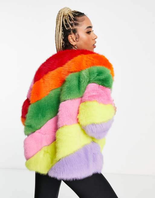 JTENGYAO Women Faux Fur Coat Rainbow Color Plus Size Winter Thick Very well made.