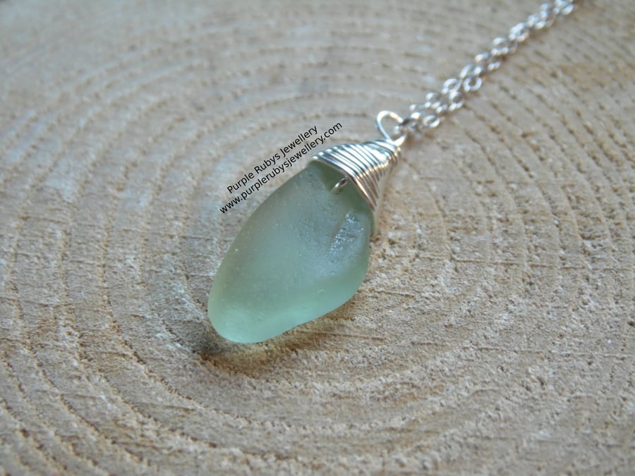 Pale Green Cornish Sea Glass Necklace Sterling Folksy Very well made.
