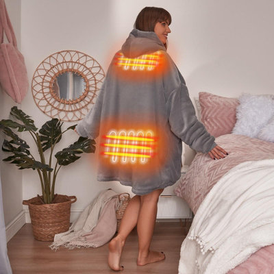 OHS Electric Heated Oversized Hoodie Blanket Adults Charcoal Very well made.